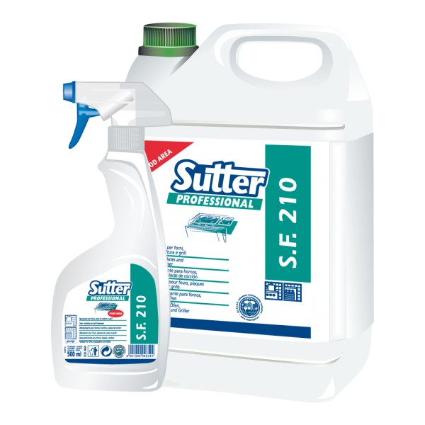 S.F.210. Formato 5kg. Detergente alcalino específico para la eliminación de grasa carbonizada de hornos, parillas, placas de cocción y asadores. Apto para usarse en ambientes alimentarios (HACCP). Elimina la grasa carbonizada. Producto viscoso para garantizar una mayor adherencia sobre las superficies verticales. Apto para uso HACCP.